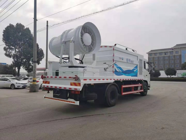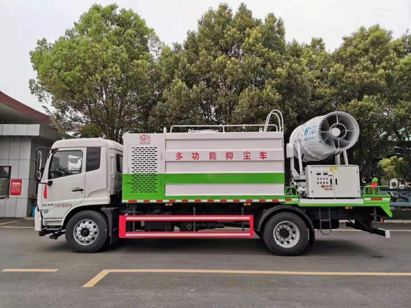 2.抑塵裝置采用國(guó)內(nèi)知名品牌,成霧量大、粒徑范圍大。霧炮噴射距離遠(yuǎn),且能實(shí)現(xiàn)俯仰角度可調(diào),滿足不同噴射距離工況的需求。使用副發(fā)動(dòng)機(jī)驅(qū)動(dòng),傳動(dòng)效率高。操作簡(jiǎn)單,各功能通斷控制為電控氣動(dòng),一鍵切換,無需手動(dòng)。